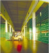 producto terminado o «de gobierno», ya que en él se lleva a cabo el control del volumen producido para el pago de impuestos. Se suelen utilizar tres tipos básicos de envase: las botellas de vidrio, los envases de lata y los barriles de madera u otros materiales. Las botellas y las latas, después de selladas, se someten a un proceso de pasteurización, con una duración superior a media hora, dirigido a extirpar todo tipo de microorganismos y así garantizar la estabilidad del producto.